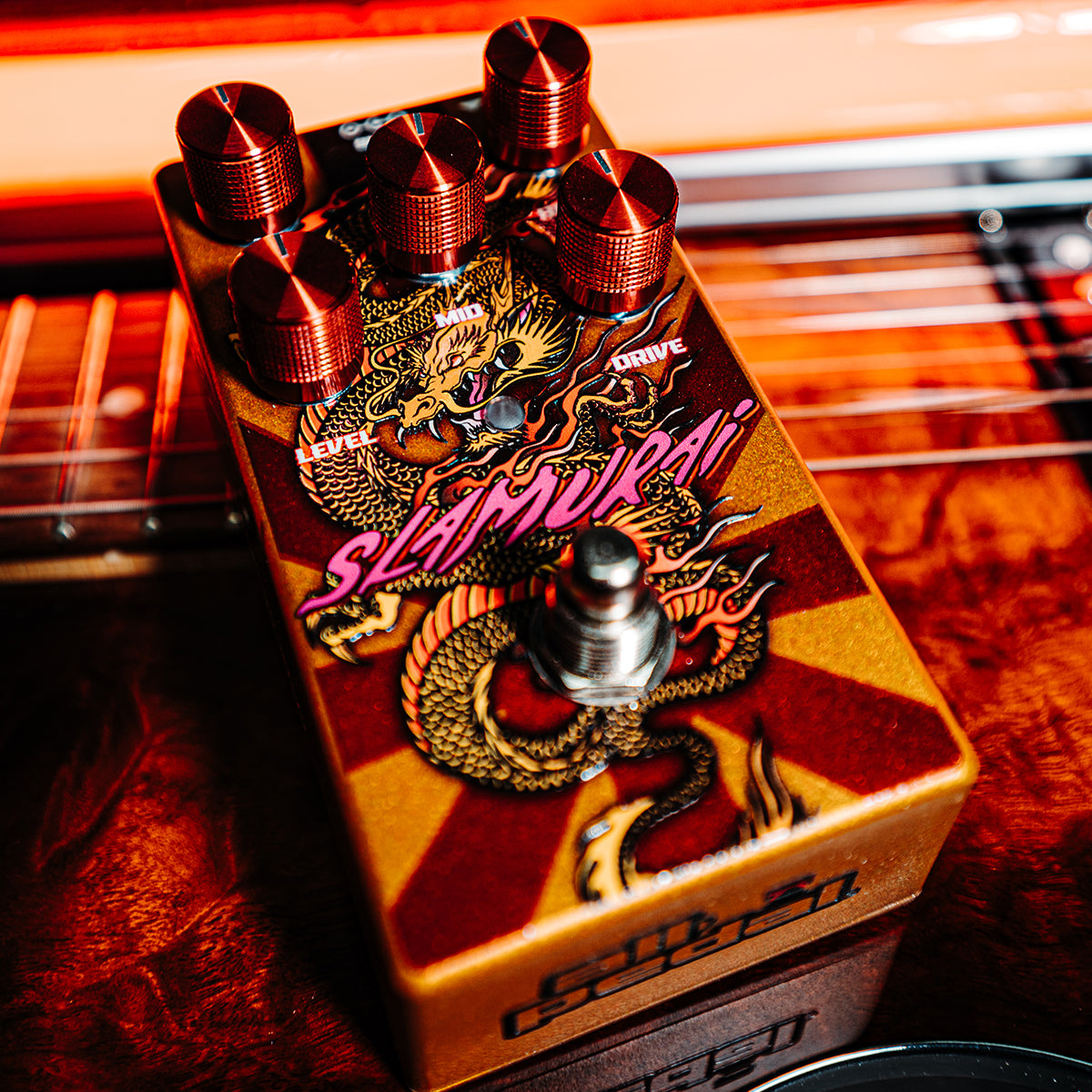 The Slamurai® is a handcrafted guitar pedal created in Paducah, Kentucky, USA, employing state-of-the-art technologies to get you the purest tone. Align your sound with the Slamurai and join the ranks of guitar warriors!